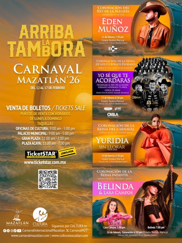¿Quiénes estarán en el Carnaval de Mazatlán 2026?